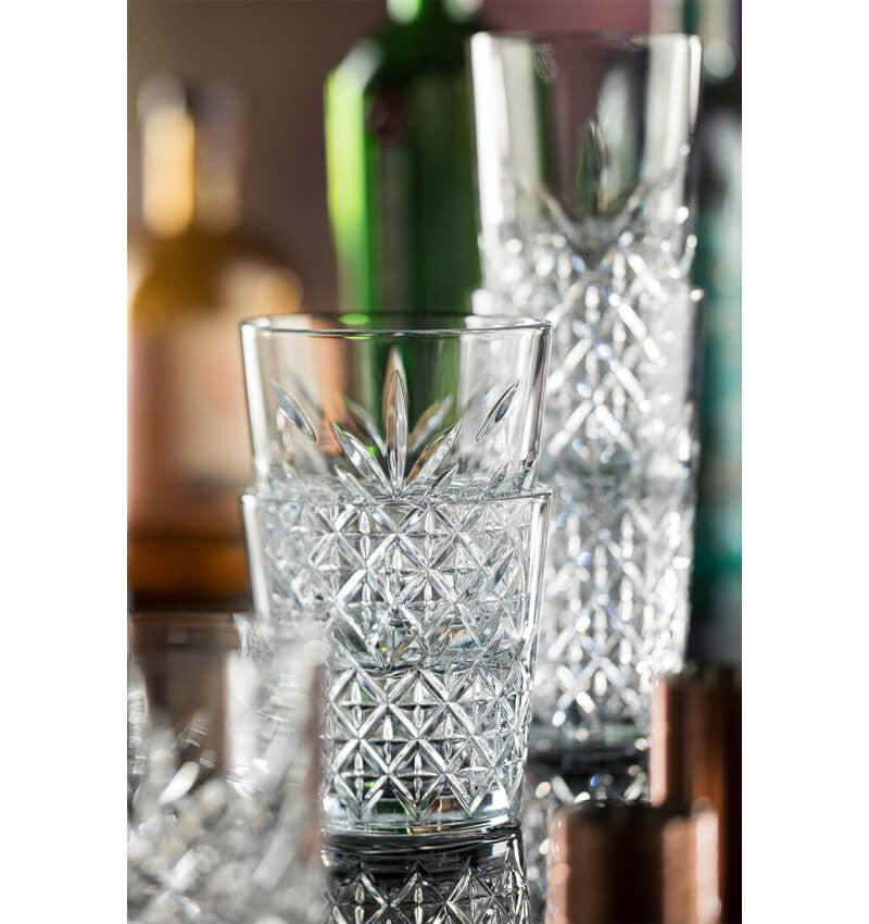 Timeless Vintage revives the look and feel of traditional cut crystal but combines it with more robust machine made glass to give that on trend retro feel in a much more versatile way. This Utopia glass is a great everyday product; a capacity of 450ml, this glass is ideal for all beverages, from juice to a spirit and mixer. With the stackable feature, it is easy to store and is also glasswasher safe making it easy to clean.