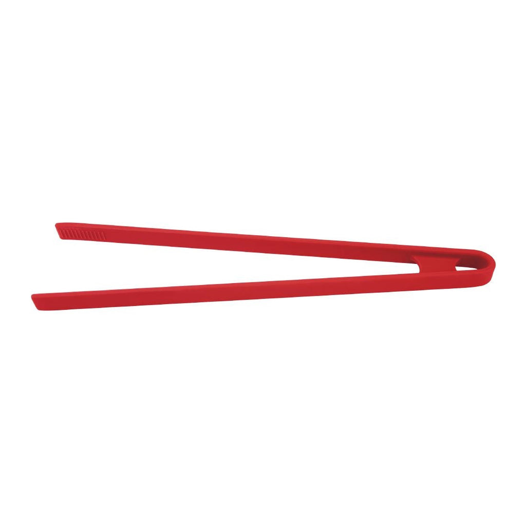 Ensure hygienic and effective food preparation with the Vogue silicone tweezer tongs. Constructed from high quality silicone, these 11.5" red tweezer tongs are completely safe for use with any food and resistant to staining, making them incredibly sanitary and easy-to-clean. The clever construction is also heat resistant up to 260°C (500°F), allowing you to use them at intense heats without breaking or bending. The soft material makes the tweezer tongs perfect for use with non-stick surfaces, preventing scratching to keep your equipment in superb condition.