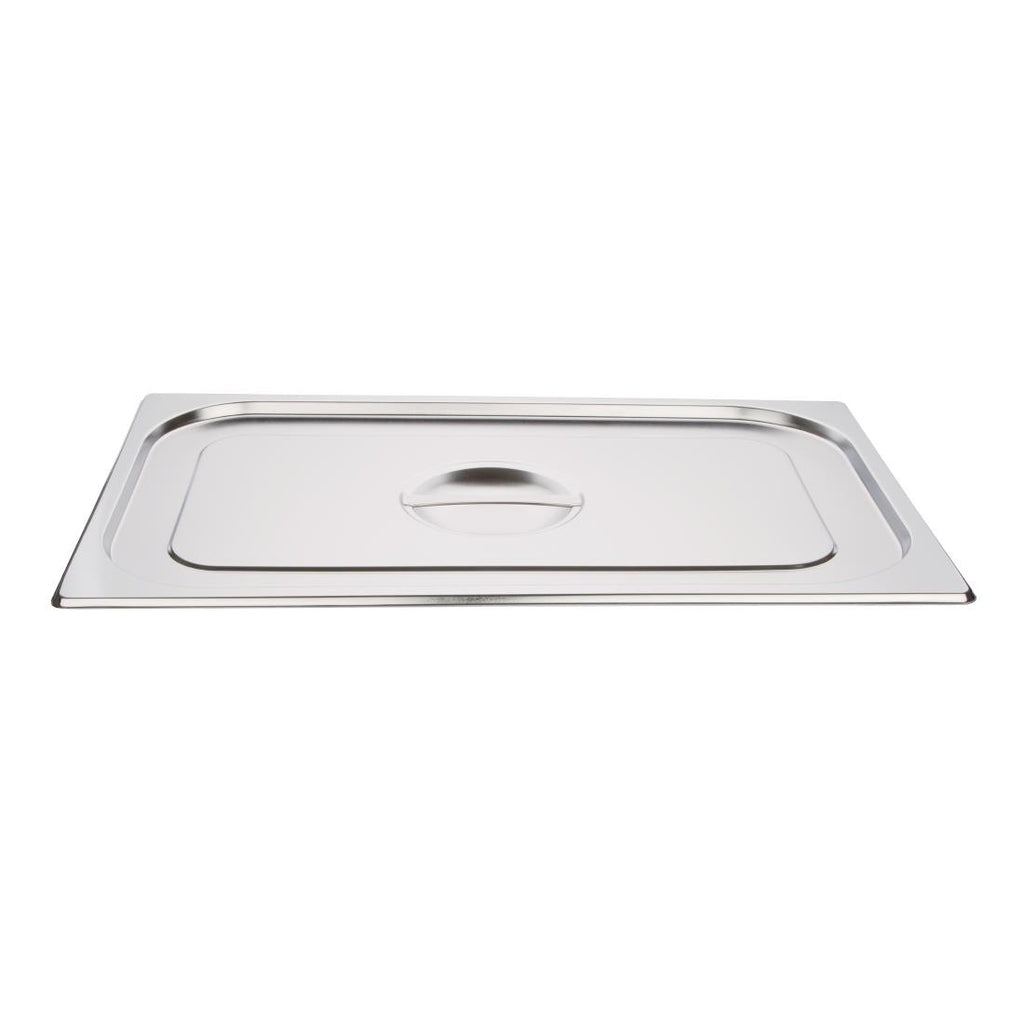 Preserve the warmth and freshness of your ingredients for longer with the Vogue stainless steel 1/1 gastronorm lid. Able to fit onto any 1/1 GN pan, the lid offers outstanding heat retention, ensuring your dishes are always served to your customers at the optimal temperature. The design of this lid also keeps your ingredients fully covered at all times, helping to sustain the delicious taste, consistency and look of your meals. Crafted from premium stainless steel, the lid is suitable for storing, transporting, cooking, reheating and blast chilling your food, reducing the number of dishes, cookware and storage equipment you use to lessen your cleaning load. The stainless steel construction also makes the lid immensely strong and robust, guaranteeing a long-lasting life even when exposed to the rigours of daily use in any fast-paced professional kitchen.