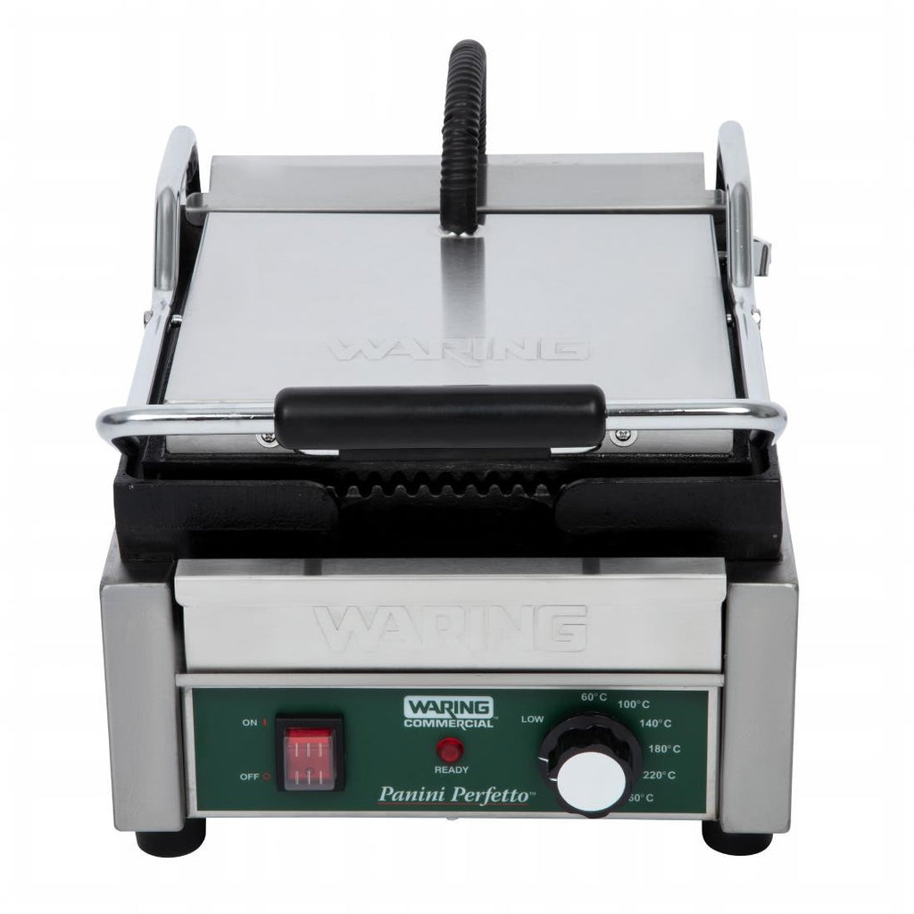 Waring panini grills are built to last, made with ribbed scratch-resistant plates, heat resistant handles and power indicator lights for convenient handling and long-term use. Ideal for cooking sandwiches, meat and vegetables, the Waring grill is compact yet capable of high output, combining fast heat up with an adjustable thermostat for maximum versatility.