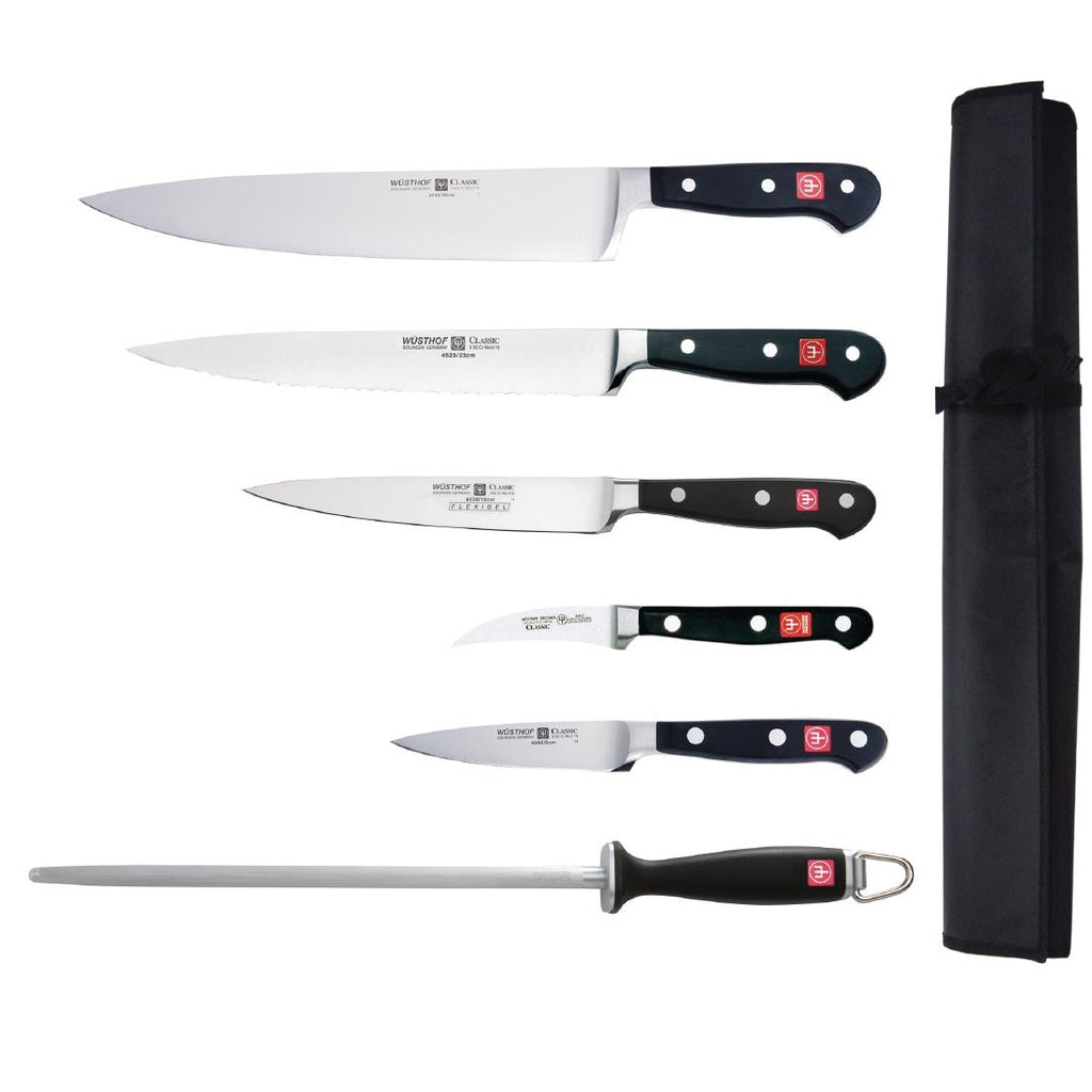 This knife set includes 6 carefully chosen Wusthof knives which will be an asset to any professional chef. Supplied with a nylon wallet to protect and transport your knives.